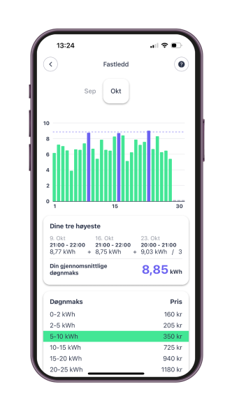 Perfekt for deg med elbil. Vi pauser automatisk ladingen av bilen din hvis du er på vei til å gå opp et pristrinn på nettleia. Du setter ønsket forbruksgrense, vi tar oss av resten.